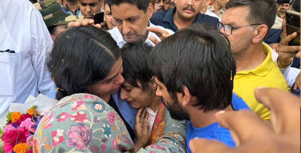 पेरिस ओलंपिक में इतिहास रचने के बाद पहलवान विनेश फोगाट शनिवार को भारत लौट आईं हैं। मेडल का जीतने का सपना टूटने के बाद बहादुर बेटी आज देश की धरती पर कदम रखा। विनेश फोगाट दिल्ली के इंदिरा गांधी एयरपोर्ट पर उतरीं।